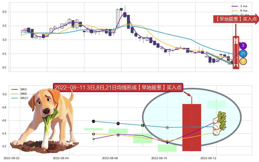 形态多维评估: ⚀ 2022-08-11日显现 3日-8日-21日均线 【旱地拔葱】买入点 看多信号,后市看涨,买入