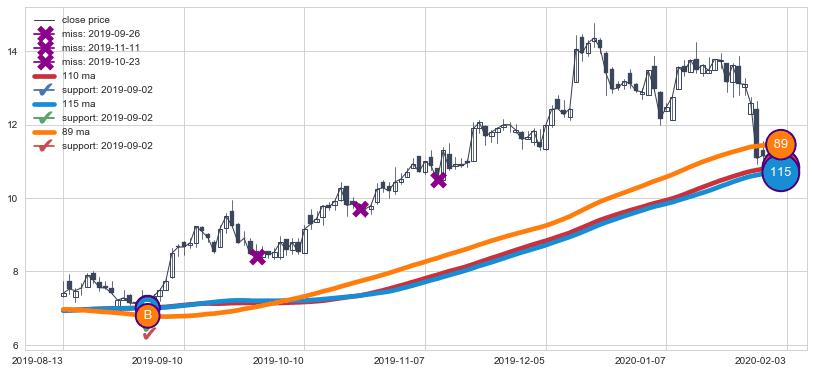 上涨趋势2019-08-13-2020-02-03,均线89, 115, 110确认关键支撑1处