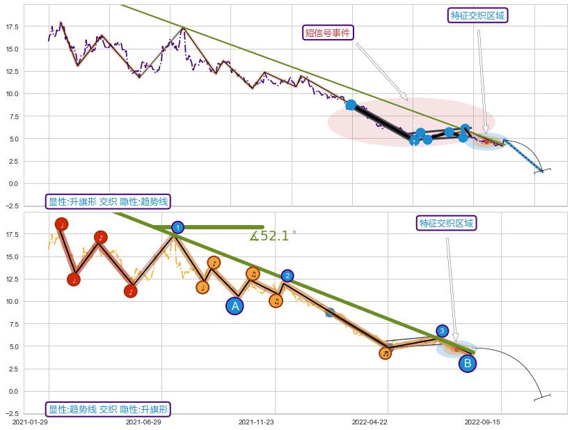 | 5 🅚:【乌云密布】卖出点 ➕ 📐:升旗形下行突破支撑位破位, 猜想持续下沉下跌,被突破的支撑位已变为阻力位 ☞ 看空信号 ⇥ 【均线】交织【图形】⇥ 综合量化分数: 47 | > |