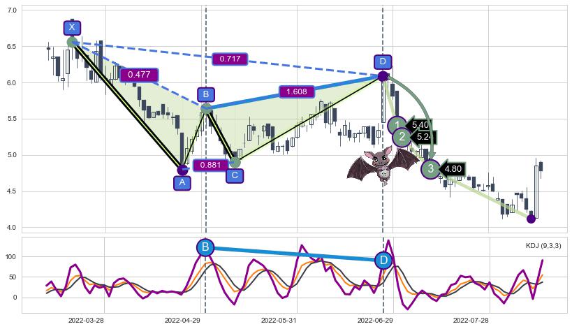 ➣ 已完成【蝙蝠】形态起点X: 2022-03-17, 终点D: 2022-06-27, 共66交易日