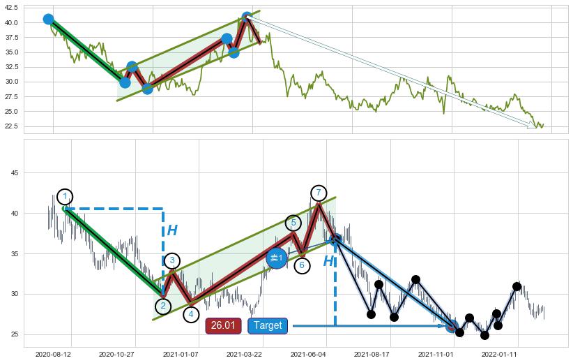 ➣ 最小中继整理跌幅→𝐇: 10.70 (𝐇旗杆的长度:旗杆起点→顶点)