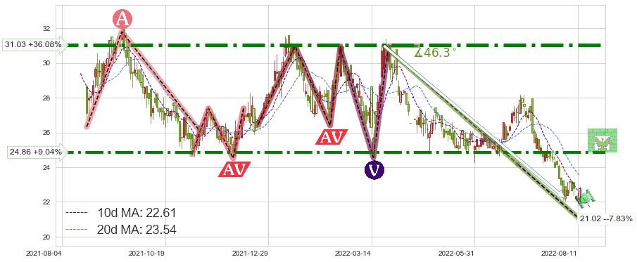 ♘ 阻力价格位31.03,可信任强度97.30%,距离最后交易2022-08-12形成的收盘价格22.80相差 +36.08%