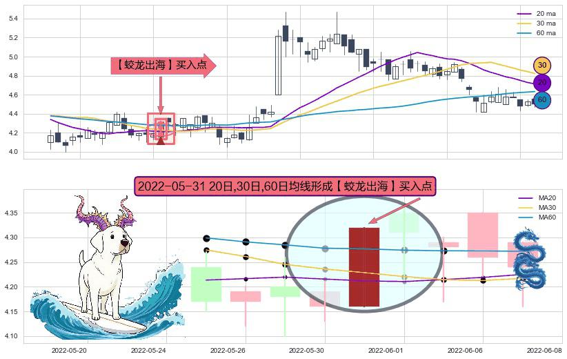 形态多维评估: ⚀ 2022-05-31日显现 20日-30日-60日均线 【蛟龙出海】买入点 看多信号,后市看涨,买入
