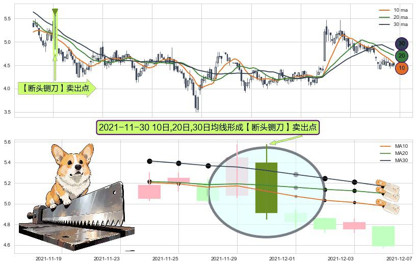 形态多维评估: ⚀ 2021-11-30日显现 10日-20日-30日均线 【断头铡刀】卖出点 看空信号,后市看跌,卖出