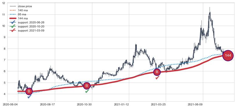 上涨趋势2020-06-04-2021-07-21,均线144确认关键支撑3处