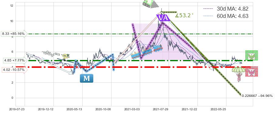 ♘ 阻力价格位4.85,可信任强度70.22%,距离最后交易2022-08-12形成的收盘价格4.50相差 +7.77%