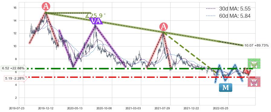 ♘ 阻力价格位6.52,可信任强度85.34%,距离最后交易2022-08-12形成的收盘价格5.31相差 +22.88%