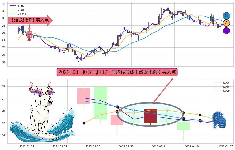 ⚀ 2022-03-30日显现 3日-8日-21日均线 【蛟龙出海】买入点 看多信号,后市看涨,买入