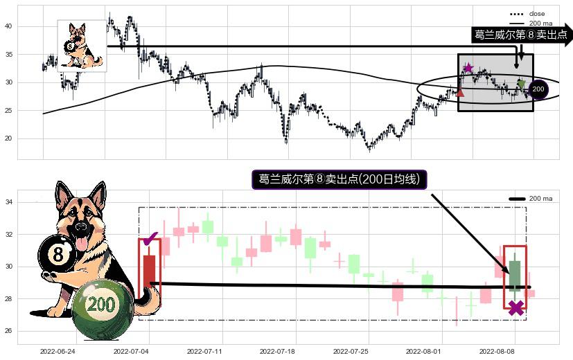 ⚀ 2022-08-08-日显现 葛兰威尔均线 200日均线 第⑧卖出点 下降趋势的中继信号,后市看跌,卖出信号