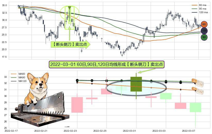 ⚀ 2022-03-01日显现 60日-90日-120日均线 【断头铡刀】卖出点 看空信号,后市看跌,卖出