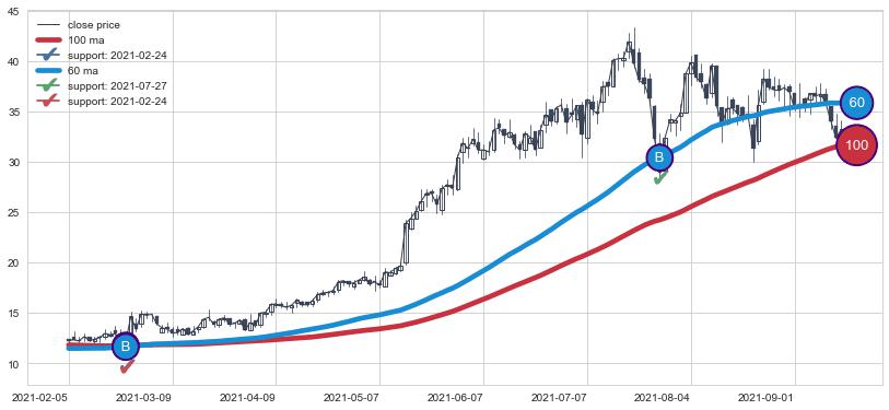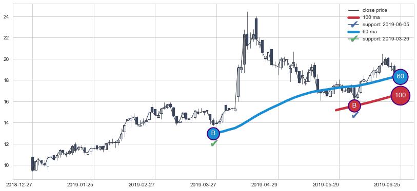 ⚃ 中期均线MA60上穿长期均线MA90形成的交叉是标准 黄金交叉