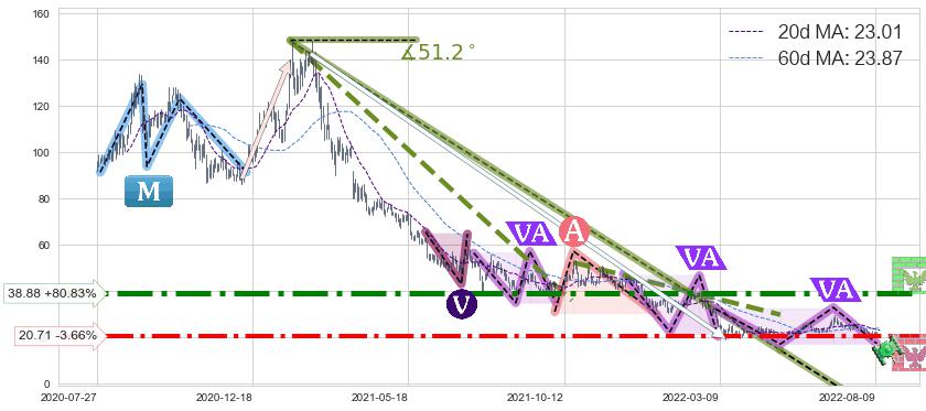 ♘ 支撑价格位20.71,可信任强度77.23%,距离最后交易2022-08-12形成的收盘价格21.50相差 -3.66%