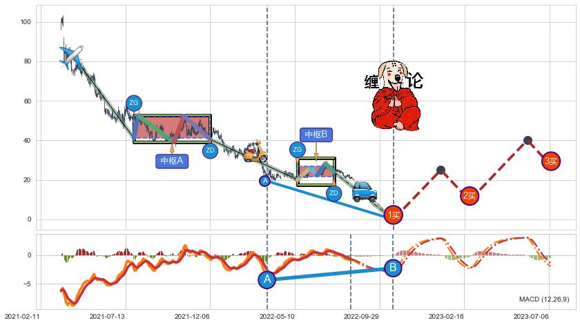 ➣ 【未完成】缠论 起点:2021-04-01, 完成第1中枢A,完成第2中枢B,到达2022-08-12