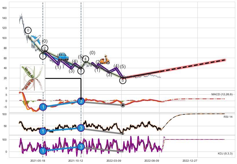 ➣ 1,3,5驱动浪MACD, RSI, KDJ走势都出现【常规背离】反转信号增强