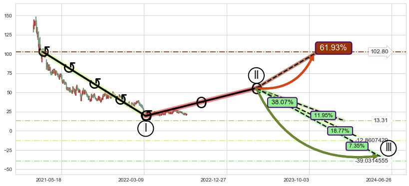 ➢ 高概率大级别循环下跌浪被破坏,反转向上(突破5浪起点)概率61.93%