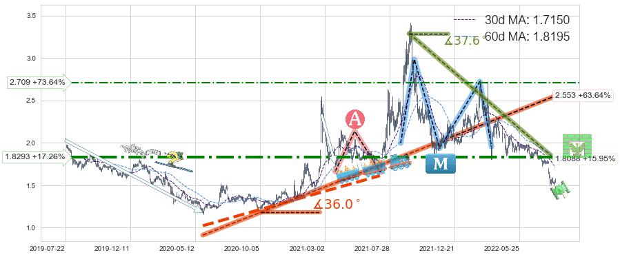 ♘ 阻力价格位1.8293,可信任强度74.92%,距离最后交易2022-08-12形成的收盘价格1.5600相差 +17.26%