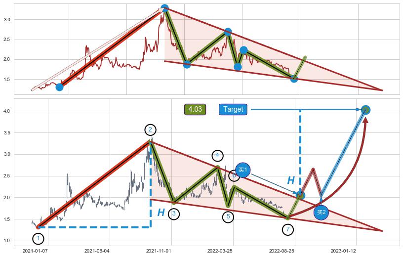 ➢ AI预测: 假定反转启动后, 第❷目标位置(2023-11-08, 2.319)