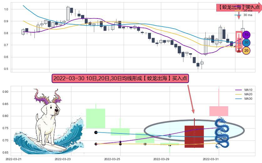 ⚀ 2022-03-30日显现 10日-20日-30日均线 【蛟龙出海】买入点 看多信号,后市看涨,买入