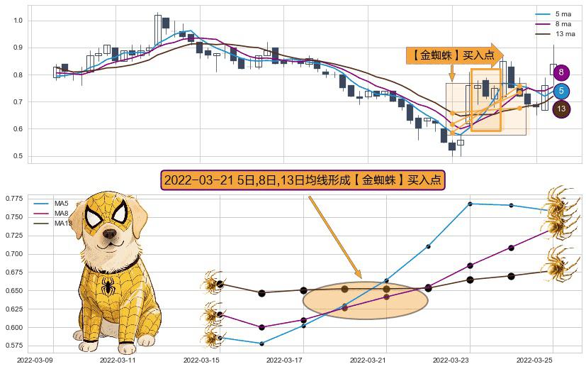 ⚀ 2022-03-21日显现 5日-8日-13日均线 【金蜘蛛】买入点 看多信号,后市看涨,买入
