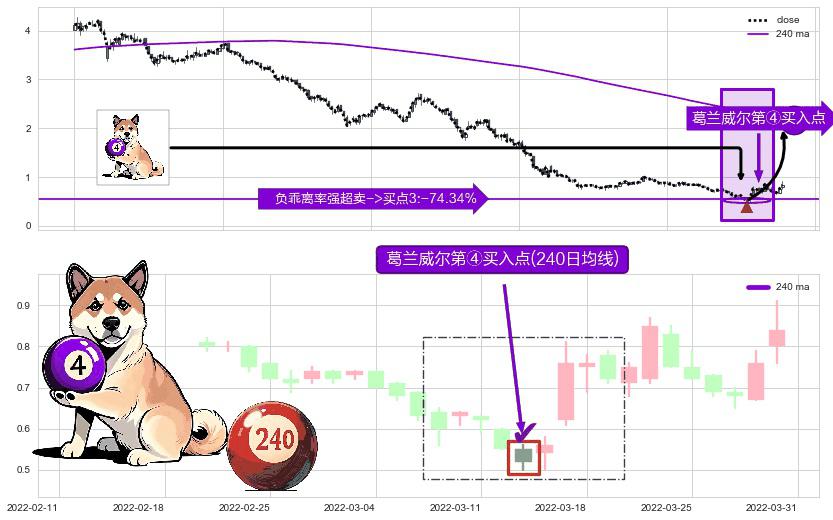 ⚀ 2022-03-15-日显现 葛兰威尔均线 240日均线 第④买入点 下降趋势均值回复的短线反弹信号,后市看涨,买进信号