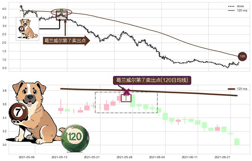 ⚀ 2021-05-27-日显现 葛兰威尔均线 120日均线 第⑦卖出点 下降趋势的中继信号,后市看跌,卖出信号