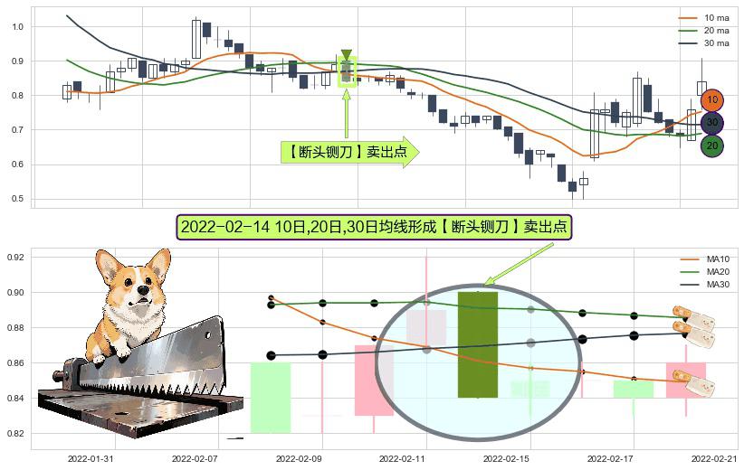 ⚀ 2022-02-14日显现 10日-20日-30日均线 【断头铡刀】卖出点 看空信号,后市看跌,卖出