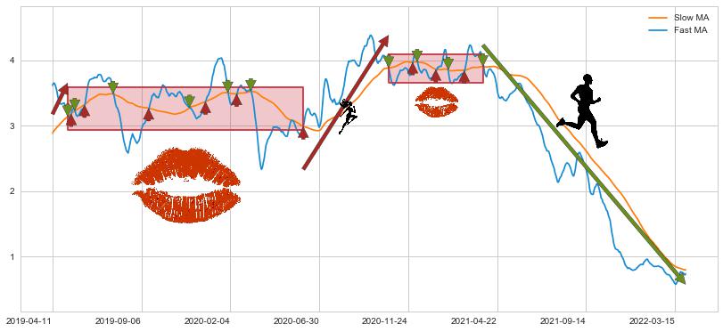 2021-03-26至2022-03-31 慢线与快线呈空头排列, 慢线与快线接触少,无缠绕