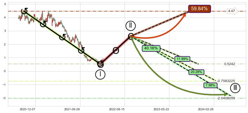 ➣ 循环浪继续向下【平均值】位置(2024-03-14, -0.7583225),匹配聚类样本比例50.51%, 可能性概率20.28%