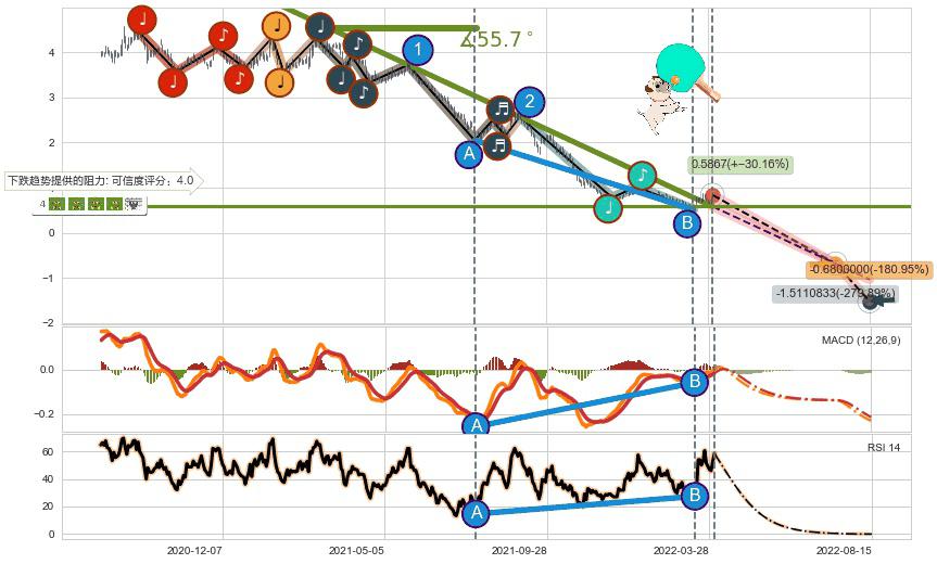 ➢ 预测:2022-07-15,【试探阻力】稳定目前下跌趋势的前提下,预测价格:-0.6800000