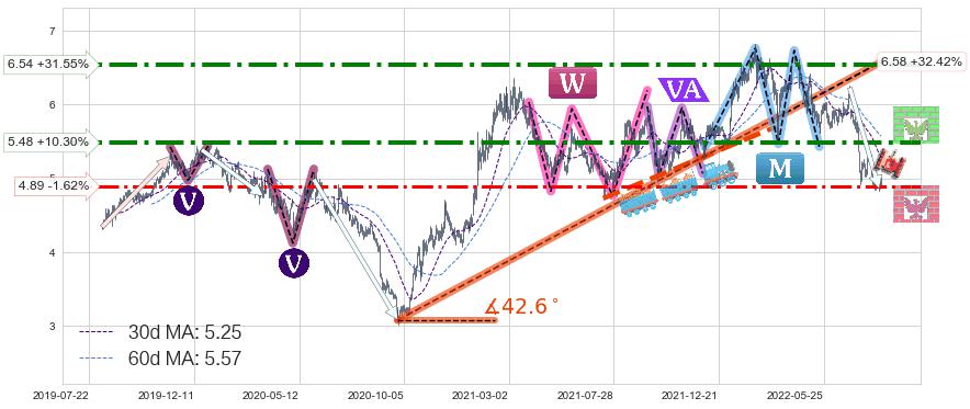 ➣ 【仅预测突破】最后价格:4.97与预测突破价格:4.83→【空间中等】后续最小【反转】第一目标价格→(2022-11-22: 3.088 )