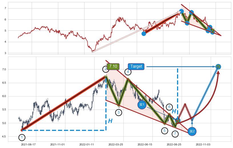 ➢ 最小中继整理涨幅→𝐇: 2.000 (𝐇楔型旗杆的长度:楔型起点→顶点)