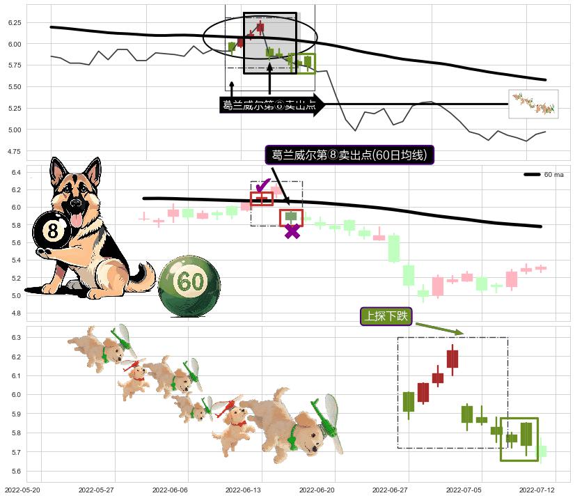 ➢ 高点影线(2022-04-19: 6.61 )→回踩→第一根k线低点(2022-04-11: 6.60 )