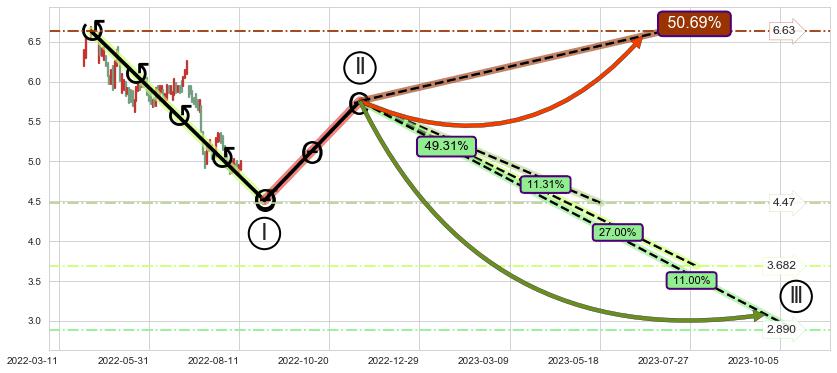 ➢ 循环浪继续向下【最高】位置(2023-05-19, 4.47),匹配聚类样本比例22.94%, 可能性概率11.31%