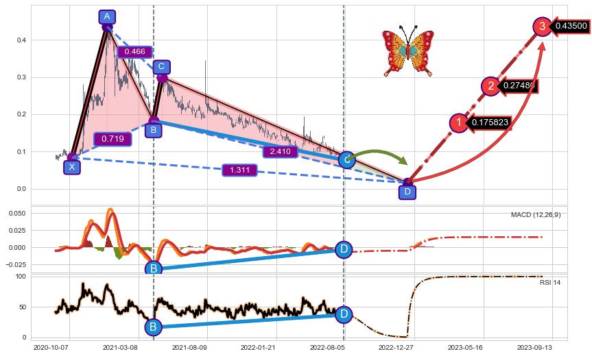 ➣ D点拟合预测价格0.0156200,距离最后交易收盘价格0.0780000相差 -79.97%