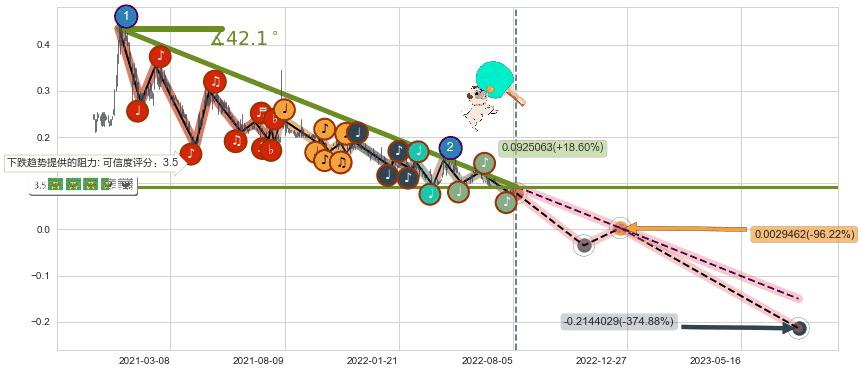 ♘ 在最后的下跌阶段2020-12-30至2022-08-12,存在 持续未破位的阻力位 ,阻力价格0.0925063,可信任强度81.53%,其距离最后价格0.0780000相差 +18.60%