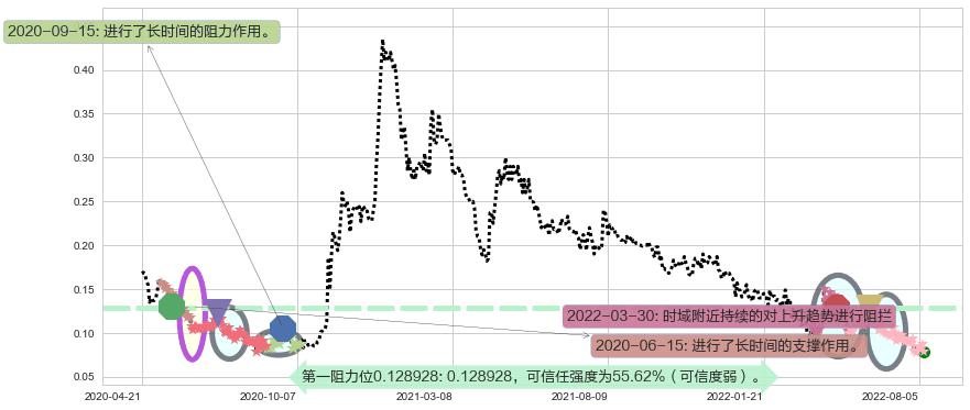 ♘ 阻力价格位0.128928,可信任强度55.62%,距离最后交易2022-08-12形成的收盘价格0.0780000相差 +65.29%