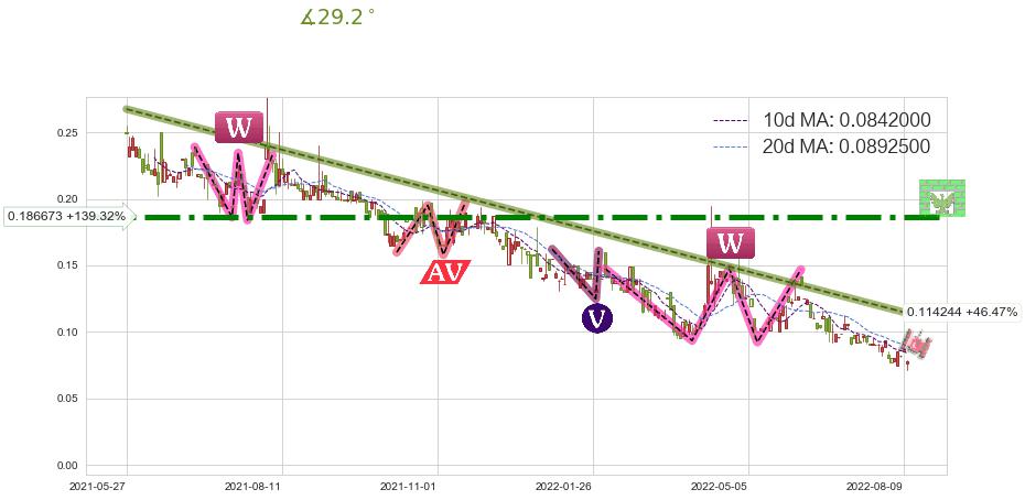 ♘ 阻力价格位0.186673,可信任强度94.80%,距离最后交易2022-08-12形成的收盘价格0.0780000相差 +139.32%
