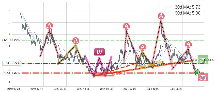♘ 阻力价格位7.51,可信任强度52.72%,距离最后交易2022-08-12形成的收盘价格5.10相差 +47.27%