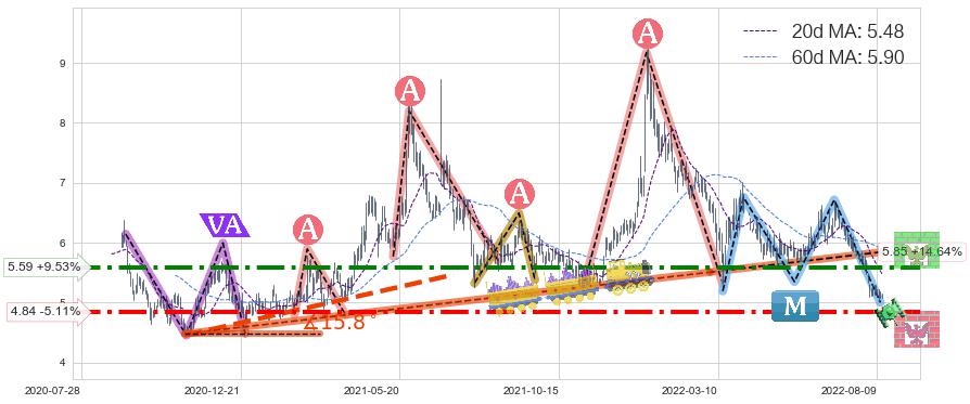 ♞ 20日均线:5.48,60日均线:5.90→ 快线<慢线