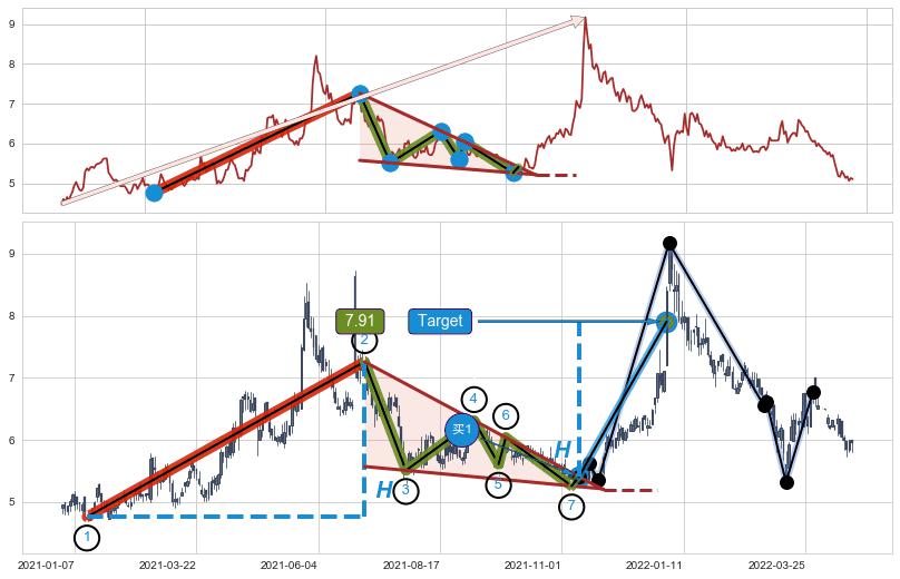 ➣ 【已达成】最小【整理】第一目标价格→(2021-12-31: 7.91 ), 后续继续【整理】上涨动力依然存在,上涨空间适中