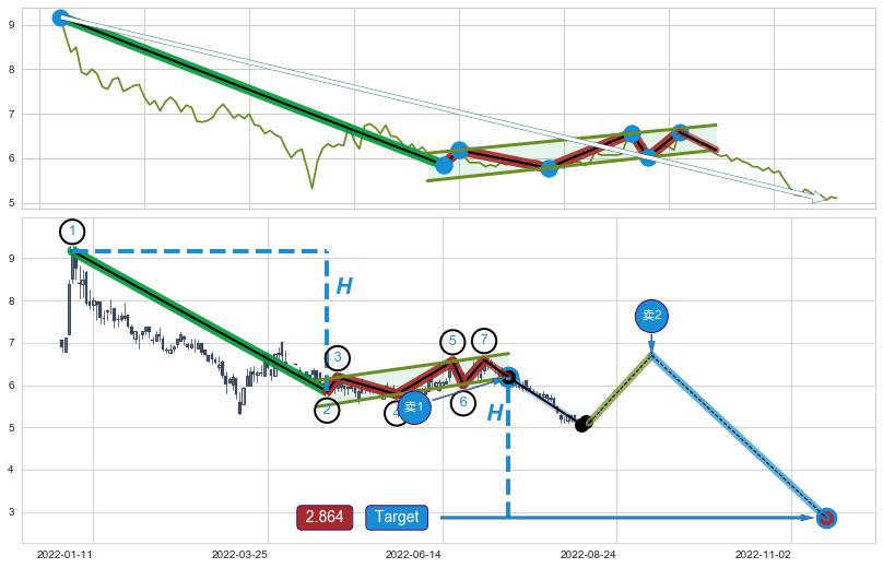 ➣ 最小中继整理跌幅→𝐇: 3.320 (𝐇旗杆的长度:旗杆起点→顶点)