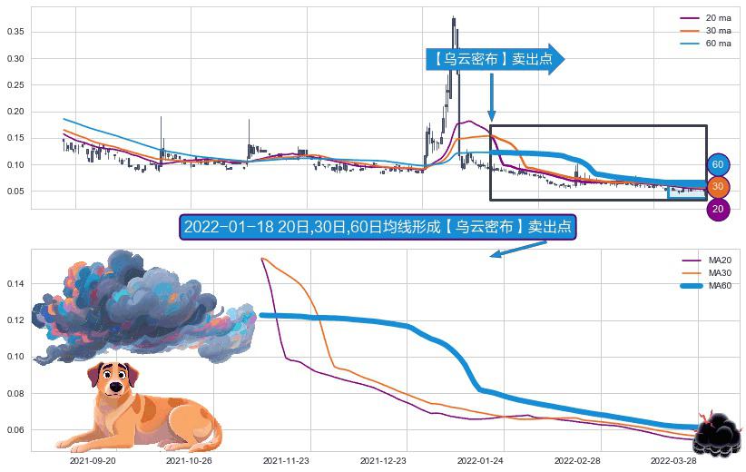 ⚀ 2021-11-09日-2022-03-31日显现 20日-30日-60日均线 【乌云密布】卖出点 看空信号,后市看跌,卖出