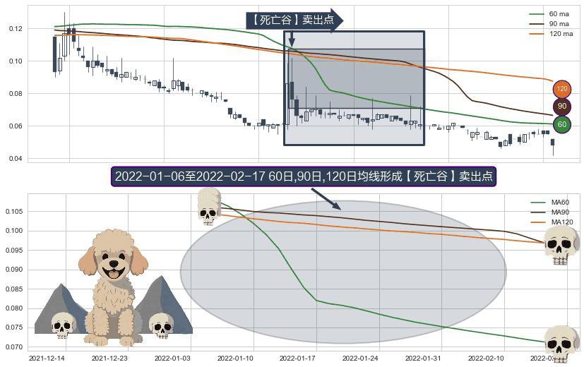 ⚀ 2022-01-07-日至2022-02-17-日显现 60日-90日-120日均线 【死亡谷】卖出点 看空信号,后市看跌,卖出