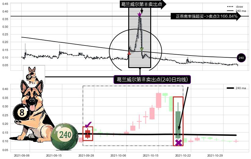 ⚀ 2021-10-20-日显现 葛兰威尔均线 240日均线 第⑧卖出点 下降趋势的中继信号,后市看跌,卖出信号