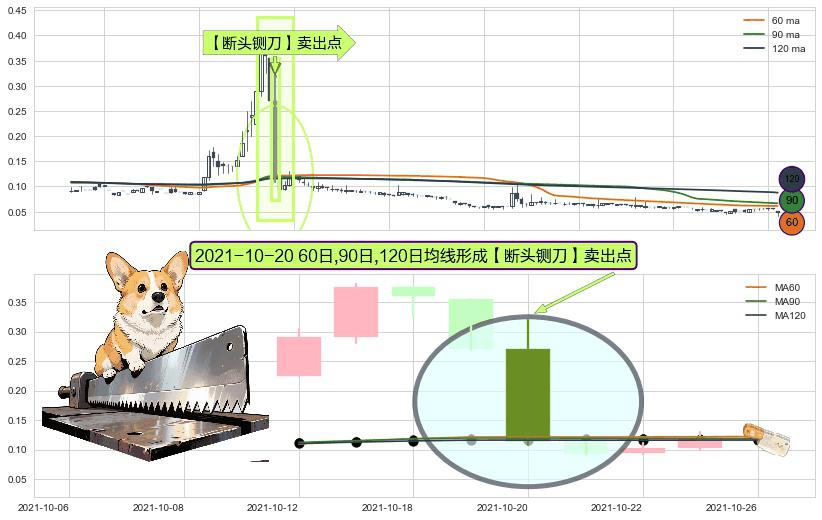 ⚀ 2021-10-20日显现 60日-90日-120日均线 【断头铡刀】卖出点 看空信号,后市看跌,卖出