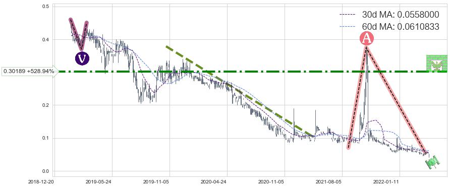 ♘ 阻力价格位0.30189,可信任强度81.26%,距离最后交易2022-03-31形成的收盘价格0.0480000相差 +528.94%