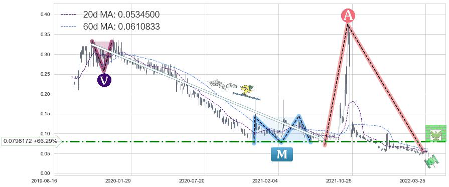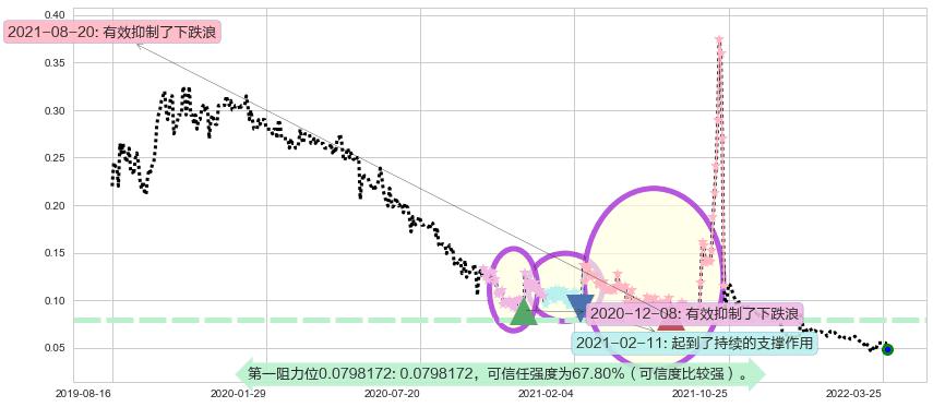 ♘ 阻力价格位0.0798172,可信任强度67.80%,距离最后交易2022-03-31形成的收盘价格0.0480000相差 +66.29%