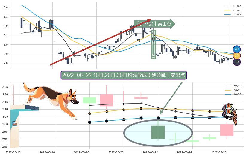 ⚀ 2022-06-22日显现 10日-20日-30日均线 【绝命跳】卖出点 看空信号,后市看跌,卖出