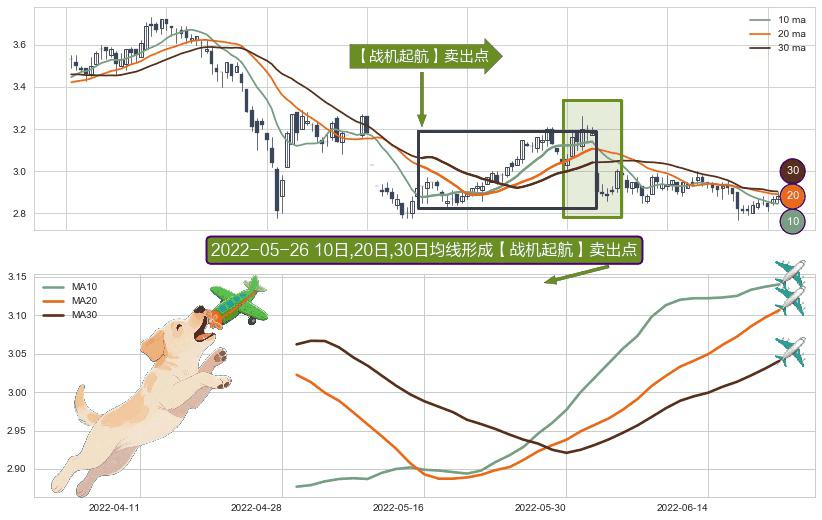 ⚀ 2022-04-29日-2022-06-21日显现 10日-20日-30日均线 【战机起航】卖出点 看空信号,后市看跌,卖出