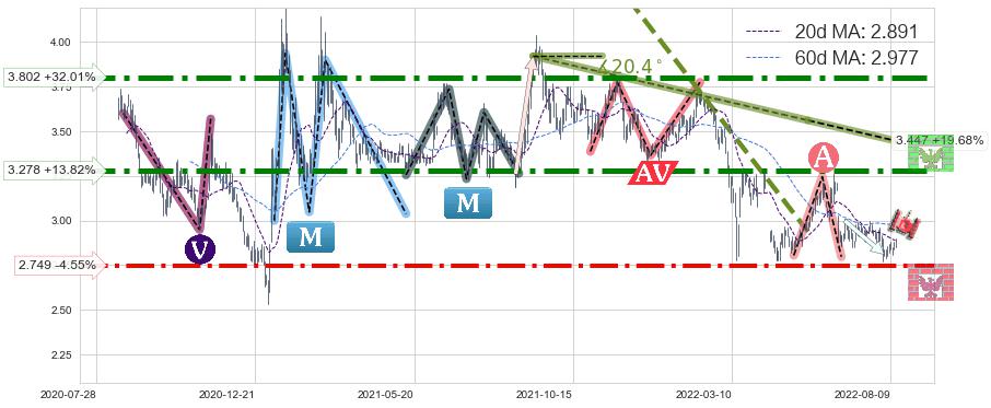 ➣ 【仅预测突破】最后价格:2.880与预测突破价格:3.270→【空间中等】后续最小【反转】第一目标价格→(2022-09-13: 3.750 )